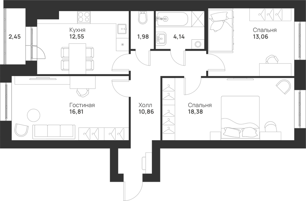3-комнатная 86.95 м2